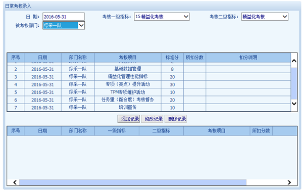 2016年1月份開始,精益化管理正式調整為一級考核指標,工資權重5%,不同單位按照專業不同下設二級指標,考慮到考核平衡性問題,不同單位根據精益化管理提升空間和考核指標數量不同,二級指標數量、考核指標、二級指標權重比例、五型績效加扣分標準有所區分。