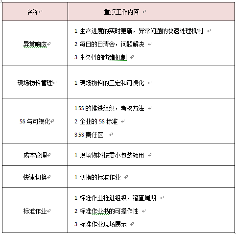 現(xiàn)場(chǎng)標(biāo)準(zhǔn)化要素工作重點(diǎn)