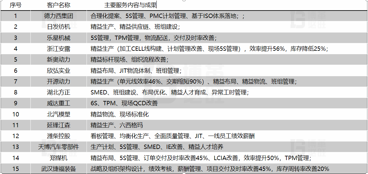 項(xiàng)目管理:能夠精準(zhǔn)地圍繞客戶需求并企劃推進(jìn)內(nèi)容,熟悉制造業(yè)生產(chǎn)運(yùn)營(yíng)全業(yè)務(wù)流程,能夠更好地保證咨詢落地效果。 熟悉行業(yè):汽配、裝備制造、工程機(jī)械等。
