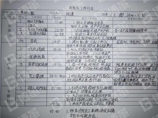 b)通過《班組長工作任務》的學習,班組長根據實際工作編寫工作任務表并填寫工作日志: