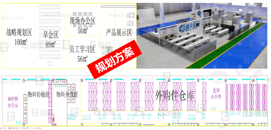 本規(guī)劃項(xiàng)目涉及對(duì)工廠進(jìn)行整體布局規(guī)劃及目視化管理設(shè)計(jì),規(guī)劃內(nèi)容包含對(duì)車間進(jìn)行智能精益布局、車間功能細(xì)化、倉(cāng)庫(kù)規(guī)劃、物流及輔助設(shè)施規(guī)劃等服務(wù)內(nèi)容,可滿足未來(lái)公司高速發(fā)展的需求。