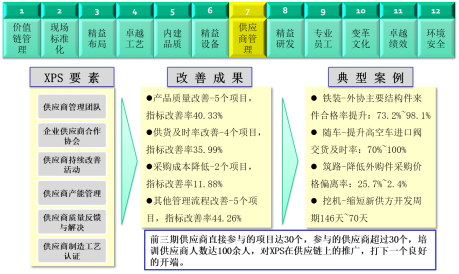XPS根據A集團及所處行業的特點,在A集團的十二五戰略目標為愿景,制定了世界級企業關注的5大目標,工程機械行業運營中最重要的12大模塊,提煉出58項要素和235項要求。