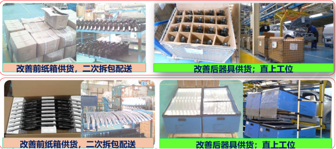1、通過推行免包裝上線,節(jié)約的包裝成本、裝卸人工、開箱作業(yè)人工、場地占用面積、物料周轉(zhuǎn)頻率等,累計創(chuàng)效達到百萬余元。