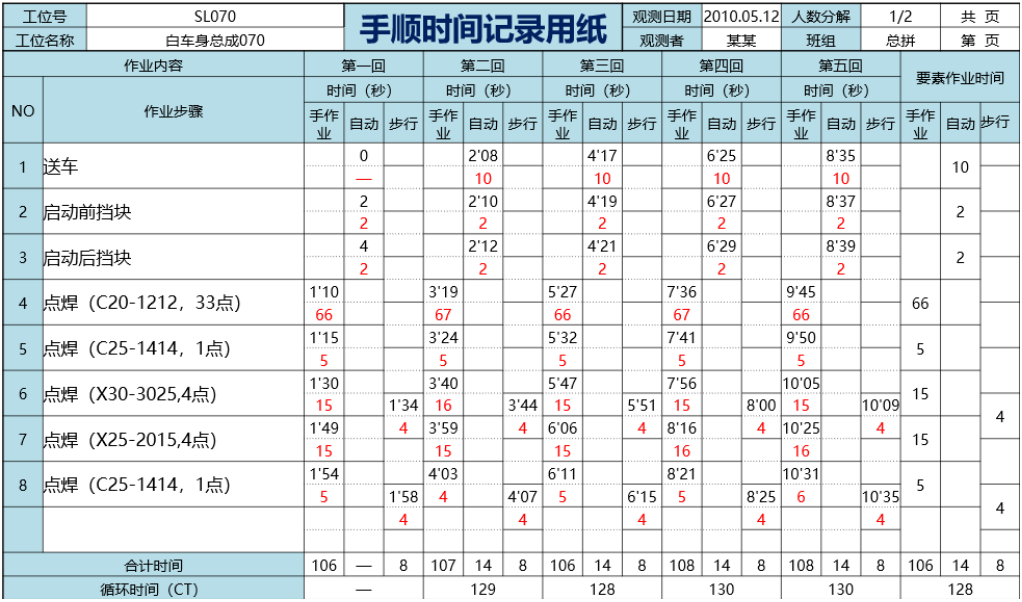 ?對各工序作業(yè)時間進行現(xiàn)場測量統(tǒng)計