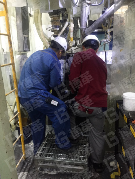 三、清掃共分兩組進(jìn)行,對(duì)加料口正面和背面做清掃,并按步驟先對(duì)加料口、加料口導(dǎo)流槽、廢料收集槽等進(jìn)行清理